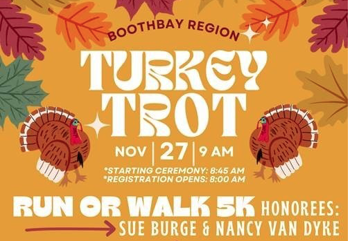 The annual Turkey Trot is sponsored by faculty and students at Boothbay Region schools. This year’s honorees are Sue Burge and Nancy Van Dyke. They were a unanimous choice by the Turkey Trot Committee because of all they have done for so many Boothbay area students through “Set for Success.” Participants generously donated almost $4,000 including a generous contribution from our Interact Club. The funds raised will be used to improve the cross-country trails located behind the fields at Boothbay Region Elementary School.