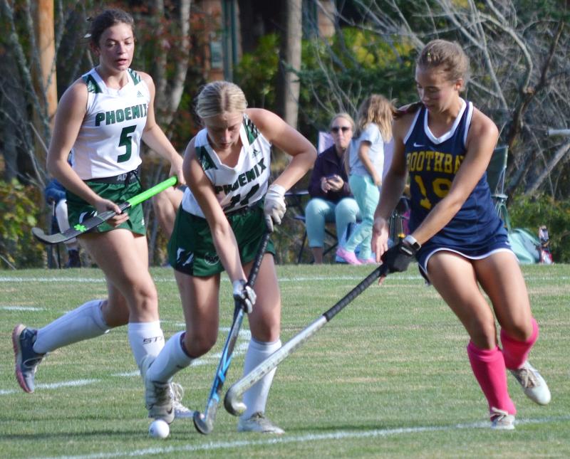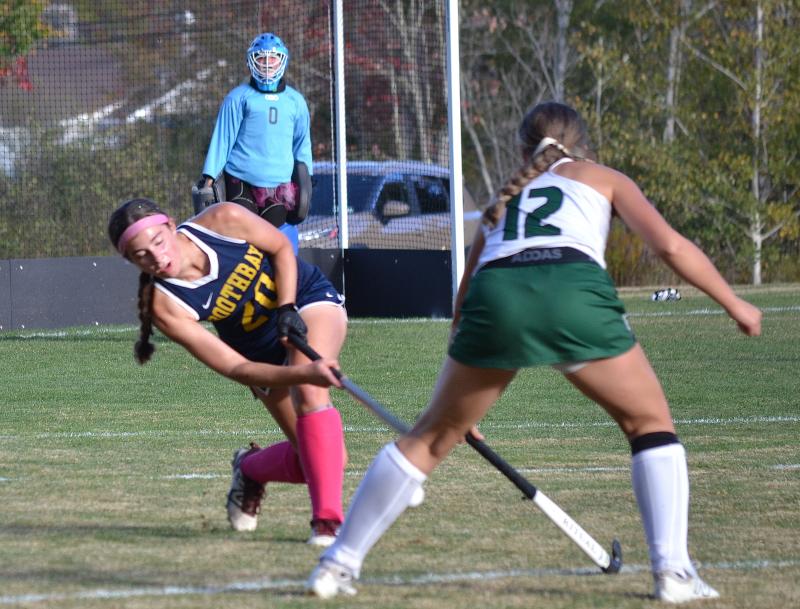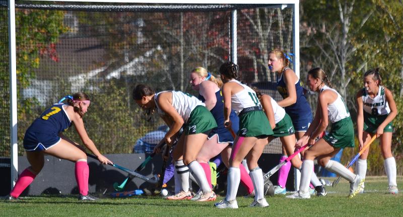 Both teams ended up with 10 penalty corners. Boothbay had seven shots on goal while Spruce Mountain had four.