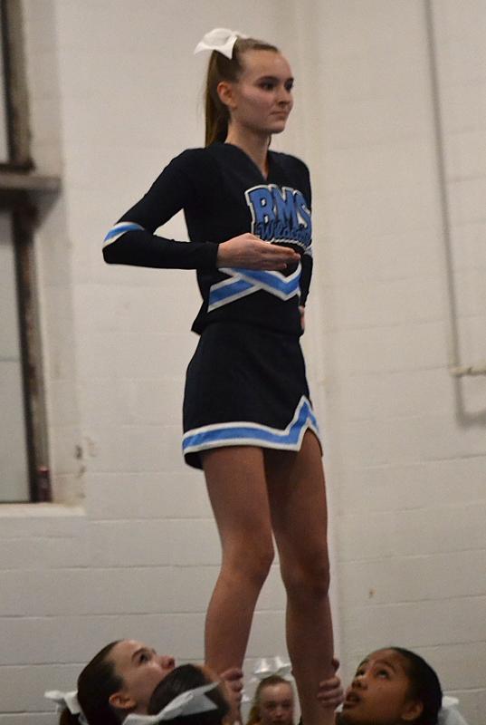 In attendance, besides BRES fans, were several Boothbay Region High School cheerleaders who helped their future members during a recent practice.