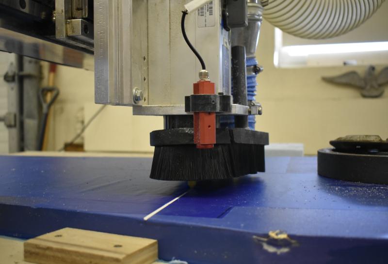 Figuring out the lettering alone went through several design phases. Laser cutting and gluing letters was too time-consuming, and wood burning them just didn’t pop, so the class landed on the CNC router, a machine that converts computer-based designs to engravings.