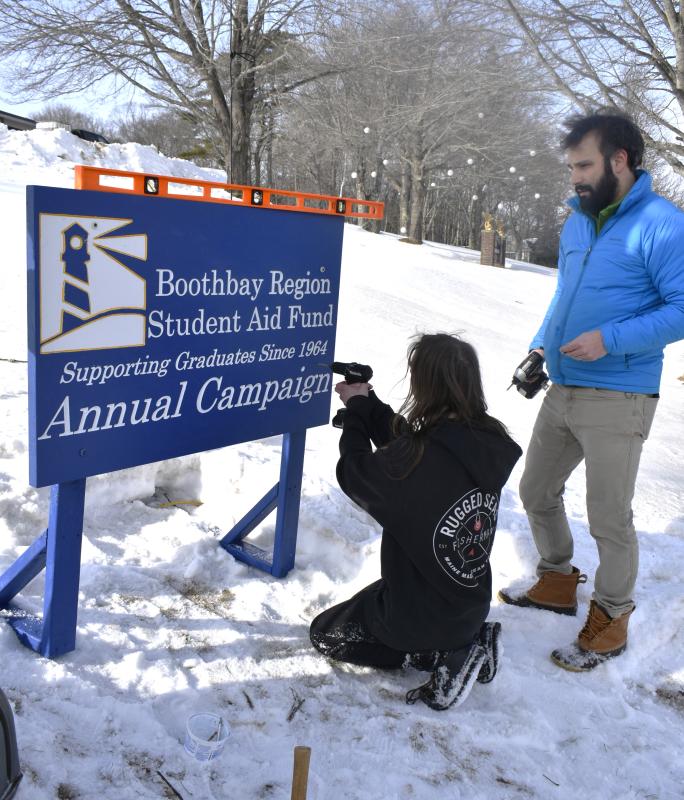 Nathan Percival and Preston Giles, right. apply a fresh coat of paint. Courtesy of Chris LibertiIf you’ve ever driven by Boothbay Region High School (BRHS), you may have noticed the annual appearance of a wooden lighthouse on the lawn. It's the campaign sign for Boothbay Region Student Aid Fund (BRSAF), which is celebrating 60 years of financially supporting post-high school education for BRHS alumni. However, it's out with the old and in with the new, thanks to a refresh from STEM (science, technology, engineering and math) class students, led by Chris Liberti and Chip Schwehm.