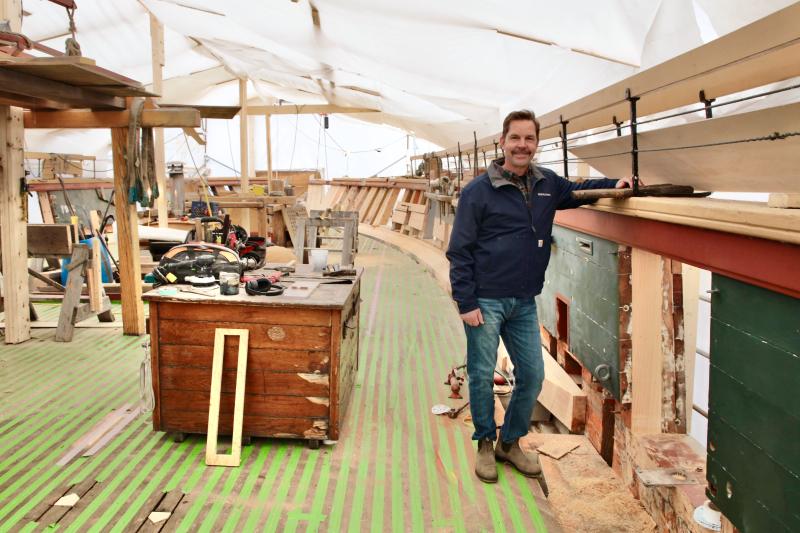 None of the ongoing projects at the yard would be possible without major repairs and updates to the physical structures on the property. These improvements were absolutely essential. When Bristol Marine bought the yard in 2017, Andy Tyska, founder and CEO, pictured above, knew that the yard needed a lot of attention, especially if the big Ernestina-Morrissey project, which had been landed by the yard, was to be undertaken, and, new work scheduled. The main railway had to be rebuilt, piers reconstructed, buildings updated with new pilings and superstructure.