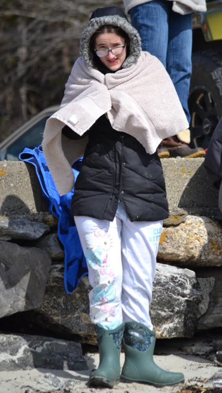 Dozens of onlookers – most bundled up in their winter coats and hats – cheered as the “leapers” ran into and out of the ocean. Some? like LeConte, went “under,” while others waded partially to their knees or waists. Parents and volunteers were quick to provide towels, blankets and clothing to the participants after their quick dip.