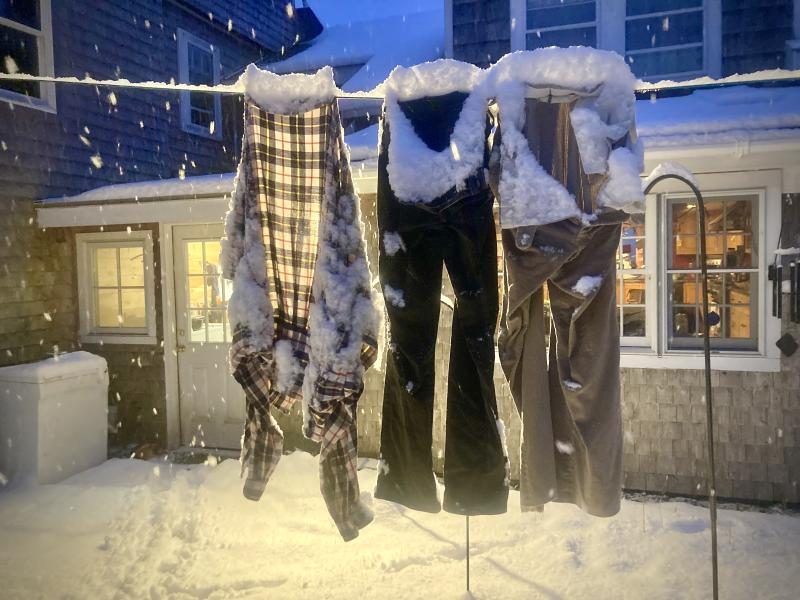 We here in our Maine home are far less inclined to hang clothes outside, but we do, from time to time, bypass the electric dryer and try to save a little on our ever increasing electric bill. And there is the fragrance item. As many respondees commented on the Facebook post, it's the smell of air-dried items that is the hook. Bonnie Jo said “I loved when Gram would hang clothes out in the winter ... particularly the sheets. There’s undisclosed 'magic' in the freezing!” Linda said she remembered leaning a pair of frozen jeans against the wall. Stephen admitted to hanging sheets out in winter, freezing solid, but they smelled so fresh and clean when thawed.