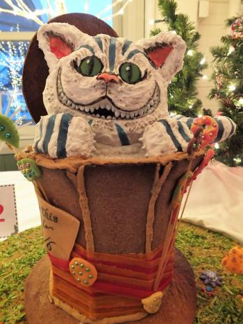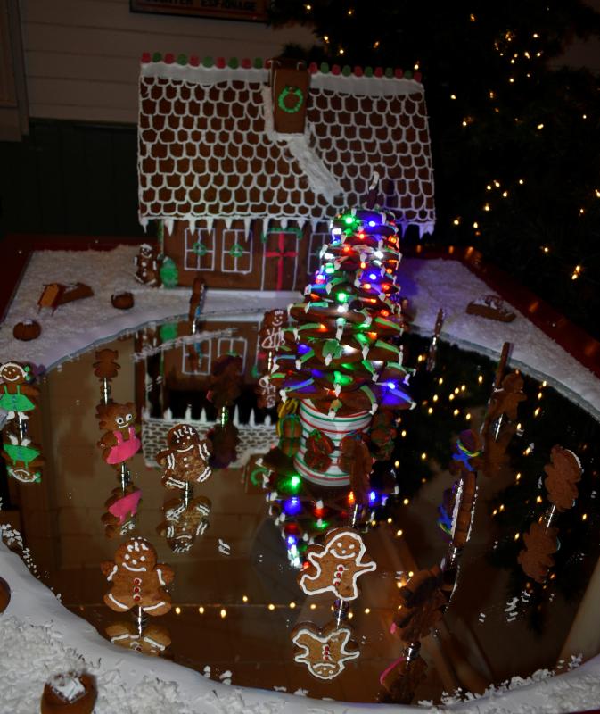 As I write this, images of past gingerbreads that I loved are dancing in my head like oversized sugarplums. First one: Susan Brackett’s Cheshire Cat/"We're All Mad Here;" Carla Warren’s “Santa’s Greenhouse” (and pretty much all of her entries); “This Forest Doesn’t Sleep” an earthy design, a tree stump with rings you could count, some kind of time travel window and, on the inside, gingers ‘round a fire watching sap run! And who can forget the “Gingerbread Skate-tacular” from 2019? Gingerbread people skated on a revolving mirror rink, a tall Christmas tree with lights, a large house with an icing pattern that reminded, reminds me of fishnetting. Spectacular indeed!