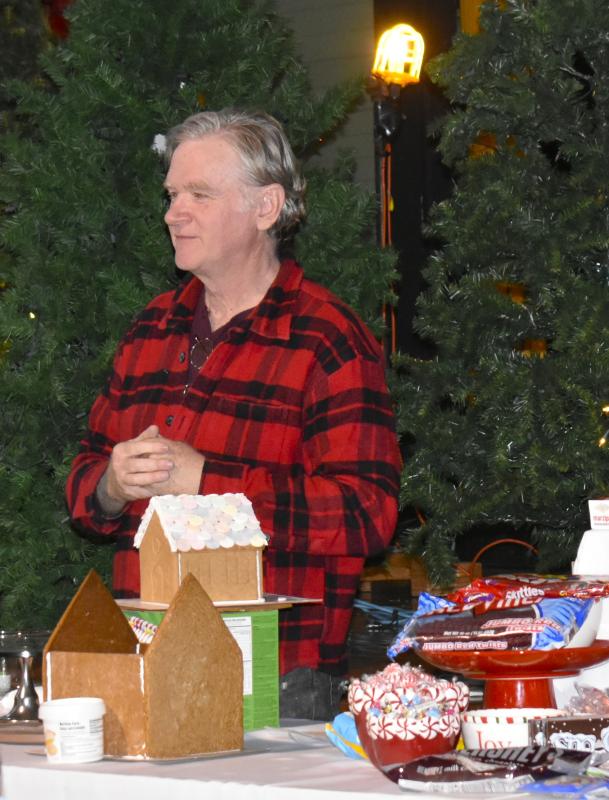 Take Mary Carr, for example, who came up from Waldoboro for the annual Gingerbread class/workshop on Nov. 20 at the Opera House. Kevin Kiley, OH technical director, set desinger and holiday decorator (and a whole lot more, really), is also gingerbread building instructor. This year, 48 signed up and around 40 attended.
