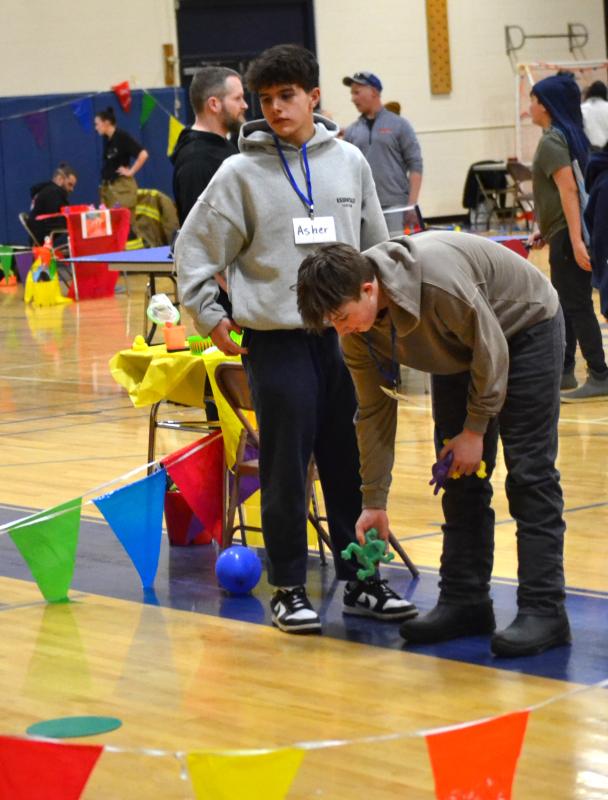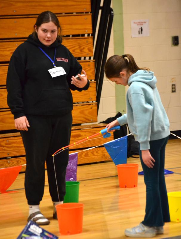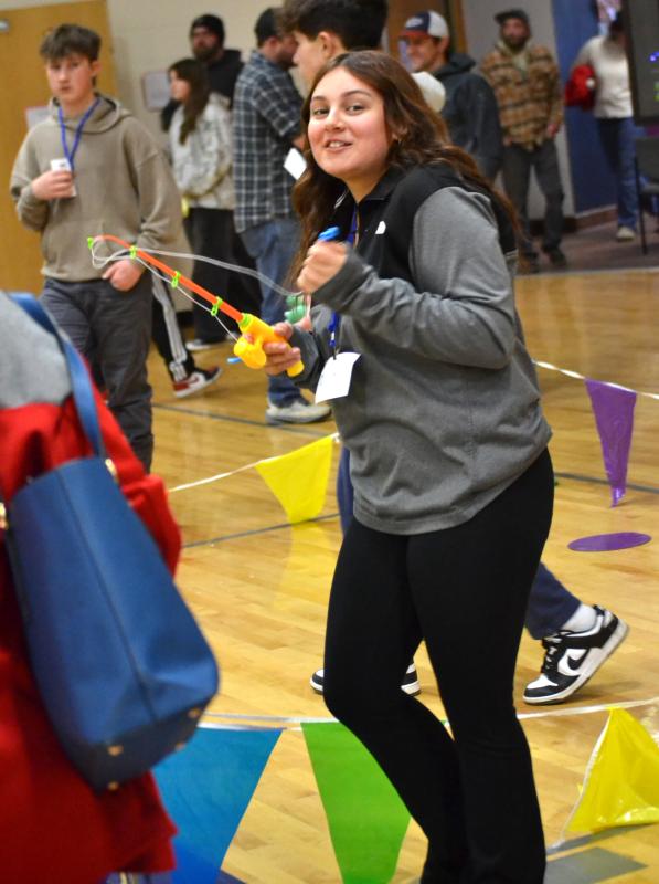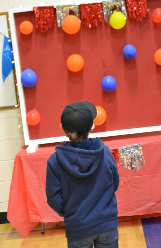 Aiming for a balloon. KEVIN BURNHAM/Boothbay RegisterThe Boothbay Region Elementary School gym got “carnival-ized” Wednesday night, with fun games, snacks and more to raise money for the BRES 8th grade end-of-the-school-year trip.