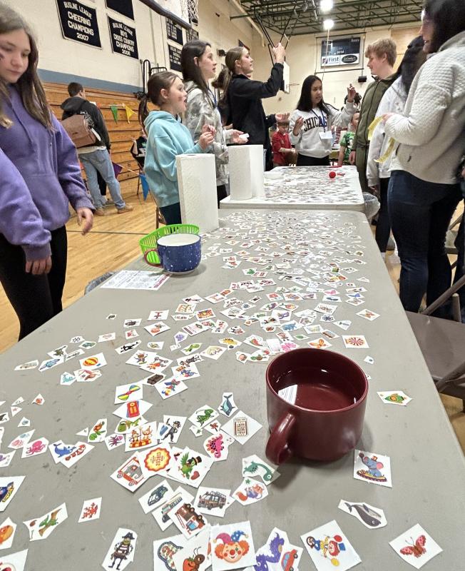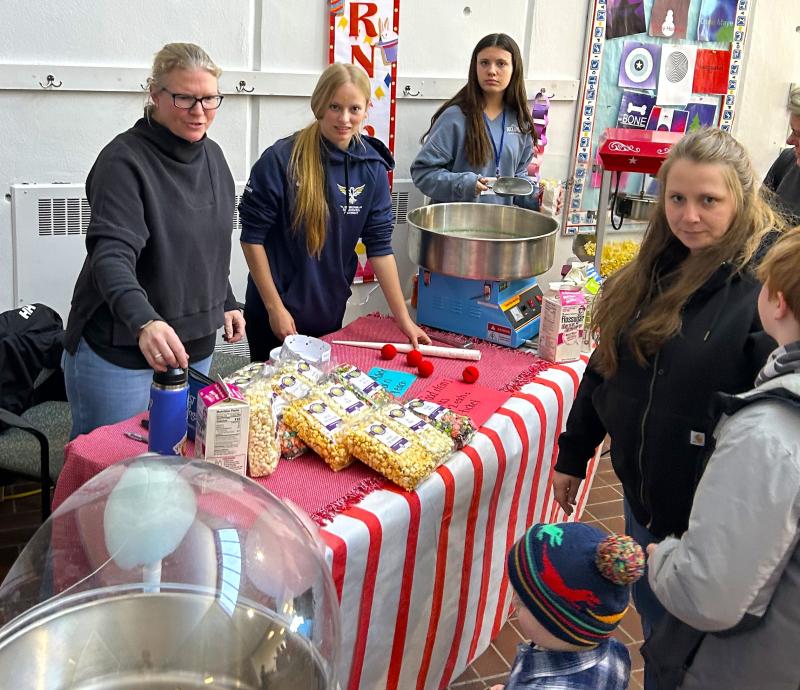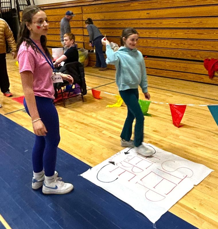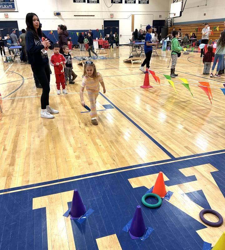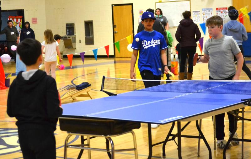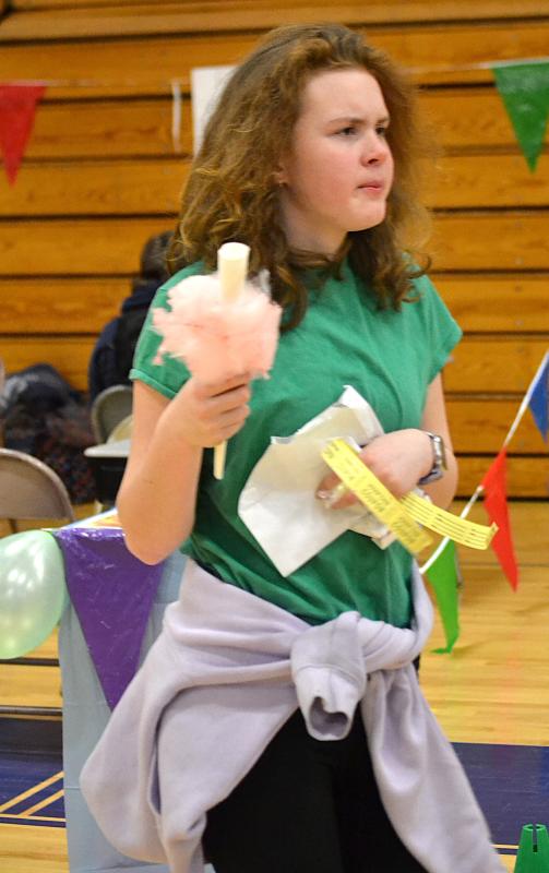 After game tickets were sold at the gym doors, kids and their families took part in the 15 carnival games, “everything from the traditional balloon pop, Plinko, ring toss to face painting and tattooing,” said Hodgdon. The games were separated with colorful flags as eighth graders helped run the games. Parents and eighth graders were in charge of food concessions which included cotton candy, Coastal Maine Popcorn and more.