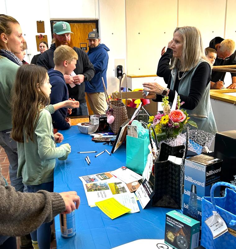 Grandparent Rosemary Bourette, right, helps with raising money for the eighth grade class. KEVIN BURNHAM/Boothbay Register