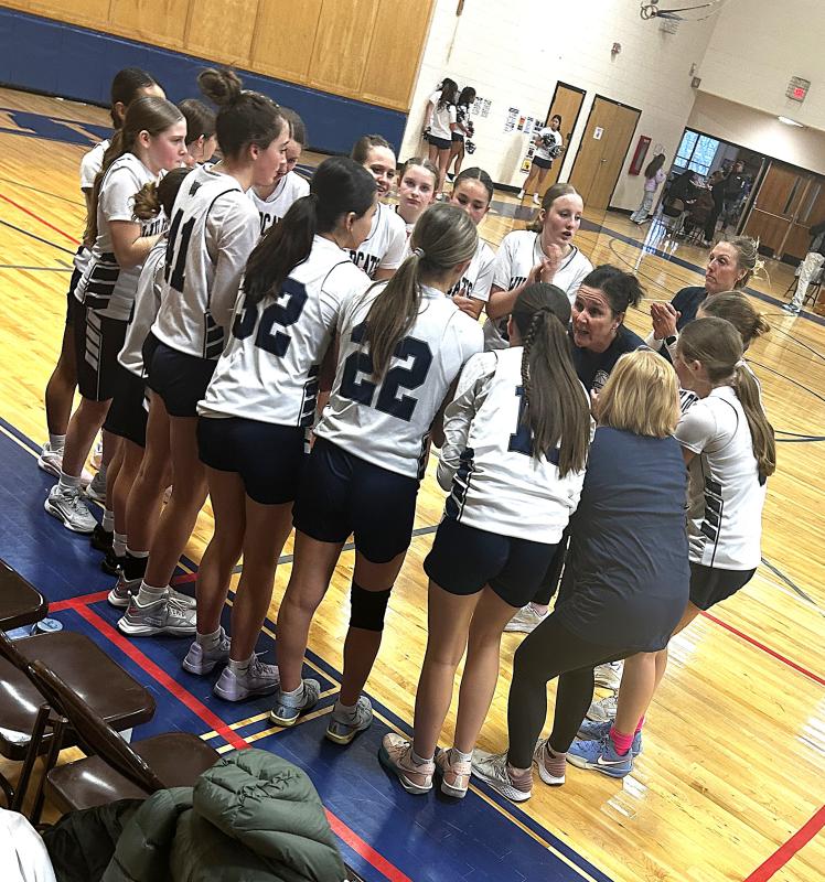 The huddle before tip-off. KEVIN BURNHAM/Boothbay Register
