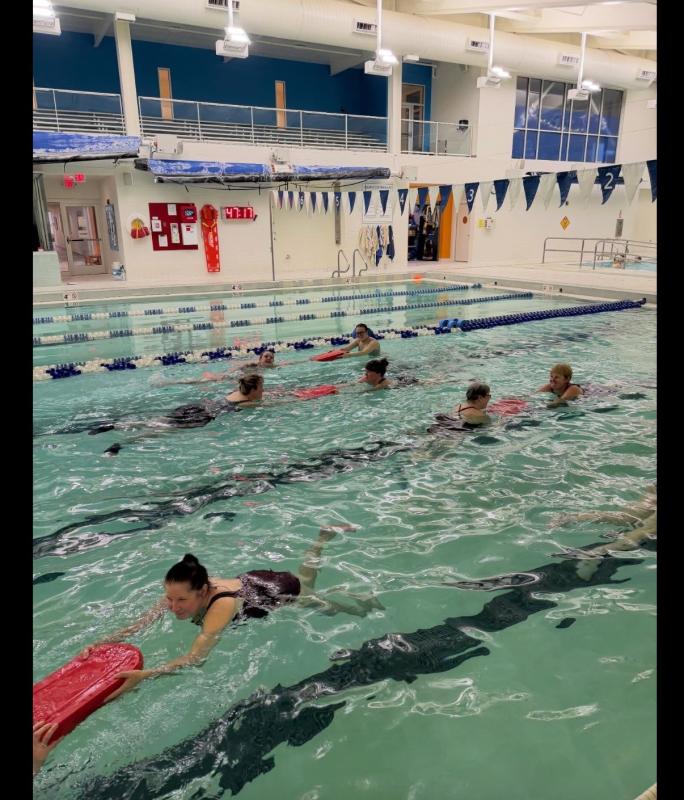 Music pumping, people chatting, roaring laughter, and splashing. These are the sounds that define Wednesday nights at the Bosarge Aquatics Center at the Boothbay Region YMCA. Aqua Bootcamp, an aquatic resistance workout, takes place in the pool every Wednesday evening from 5:15 to 6 p.m. The class is designed to use the water’s natural resistance to build strength while staying low impact on joints. Offered as part of the YMCA’s Healthy Living program, it allows participants of all ages to engage in an intense and dynamic workout.