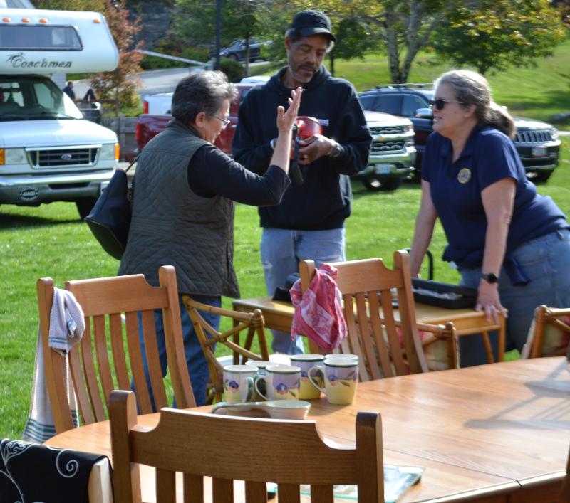 Juli Haugen was driving along Route 27 from Brunswick Saturday morning to visit her mother when she saw a sign. It was for the Boothbay American Legion Yard Sale on Boothbay Common from 8 a.m. to 1 p.m., so she delayed her planned visit.