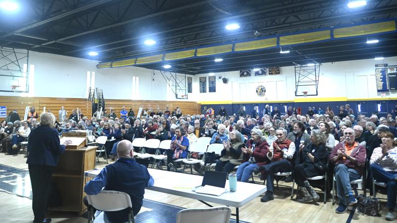 An address from Governor Janet Mills – a candidate for the U.S. Senate, a live video feed from Washington, D.C. from famed writer and history professor Heather Cox Richardson (a Round Pond resident) and several speeches from state and local candidates were the highlights of the Lincoln County Democratic Committee’s caucus held at Medomak Valley High School on Saturday, Feb. 28.