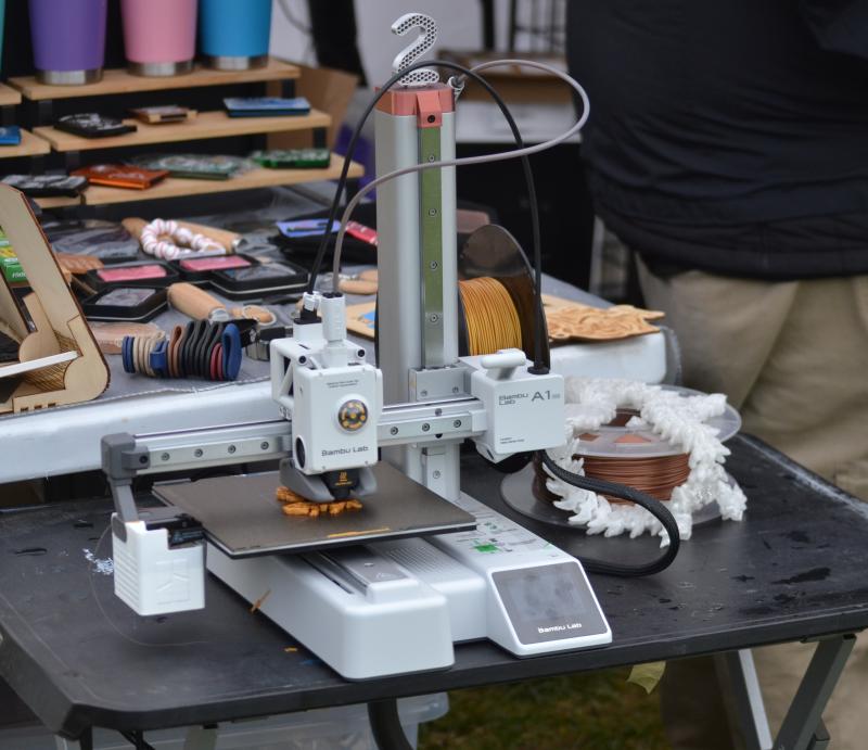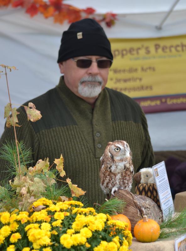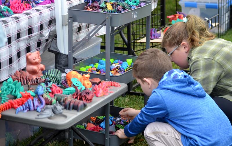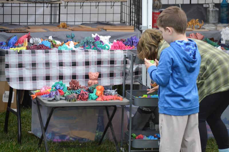 One of the vendors was Stephen Avery, a teacher at Bonnie Eagle High School in Hollis Center. His “sidelight” business, Avery Custom Engraving, drew the eyes of several people with his colorful laser created “creatures,” as he also brought along one of the machines to show the process.