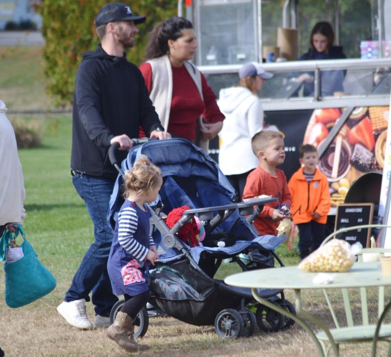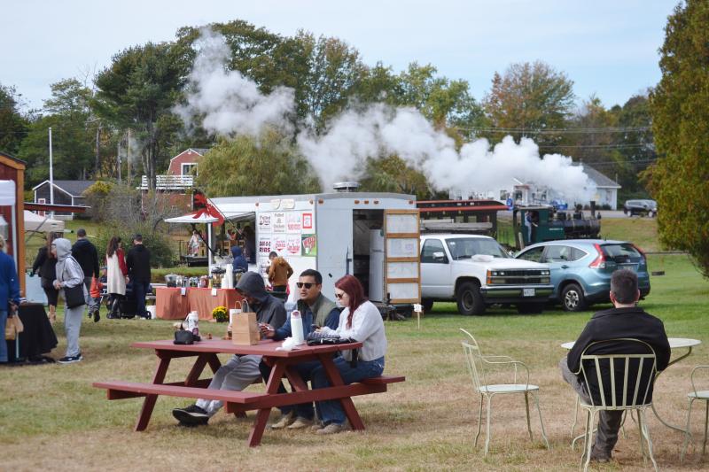“I think I’m done,” said Elaine Fossett Rittershaus, longtime summer resident of Sprucewold and columnist for this newspaper, as she and her family, toting purchases, made their way past some of the 80 vendors at the 57th annual Fall Foliage Festival at the Boothbay Railway Village Museum on Sunday, Oct. 12.