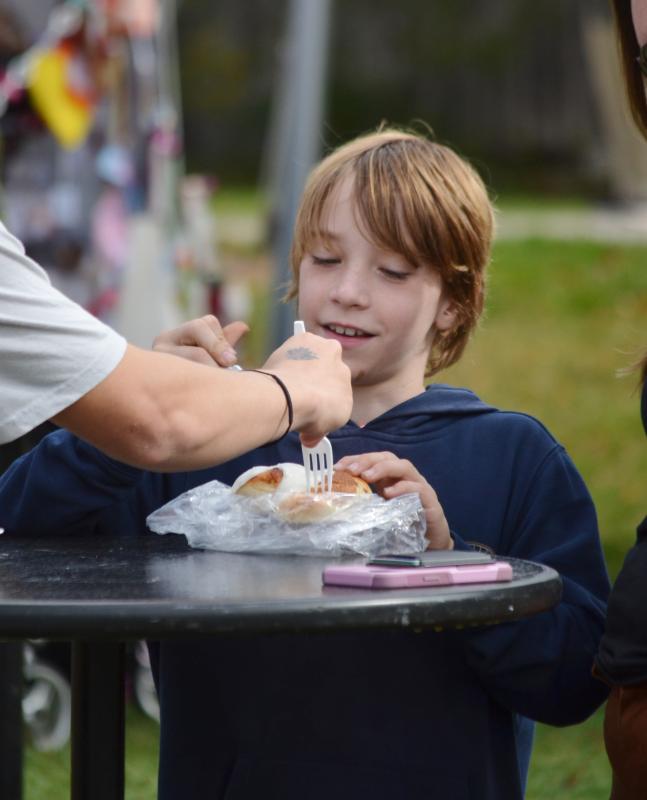 By noon on Sunday, the grounds (and parking lots) were crowded, as people visited the various booths and eating the various foods—barbecue, charcuterie, Caribbean offerings, cider, chowder and more – while music was provided by singer and guitarist Justin Merle.