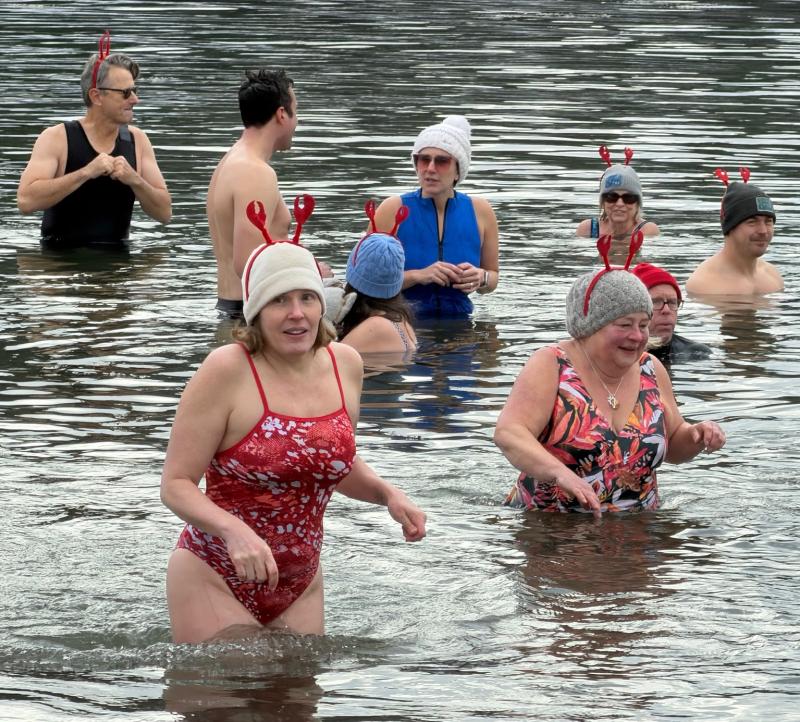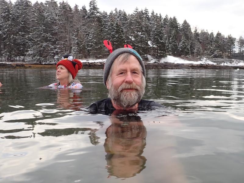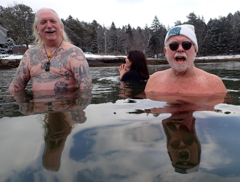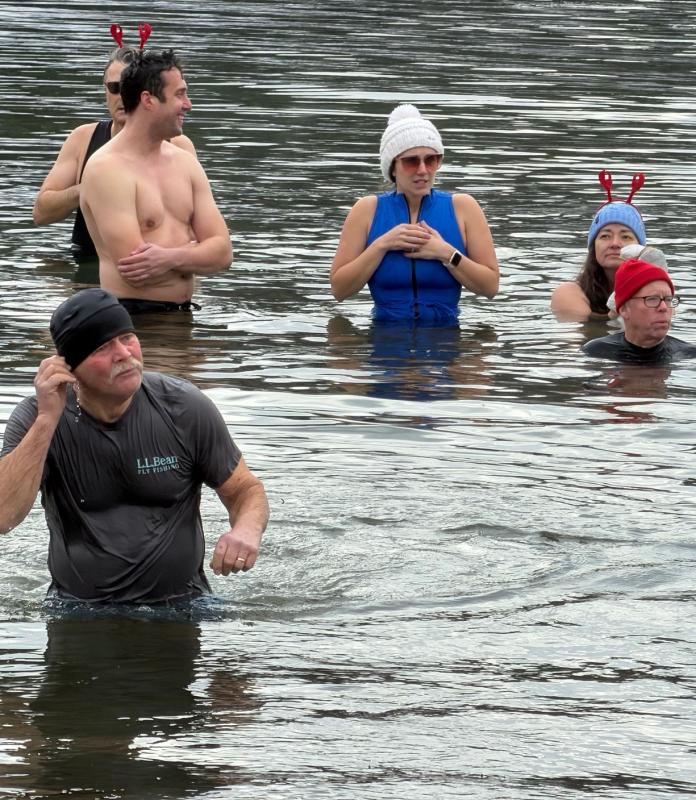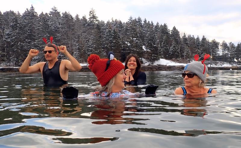 Participants had a dip and some polite conversation Jan. 1 during BRYMCA's Penguin Plunge. BILL PEARSON/Boothbay Register
