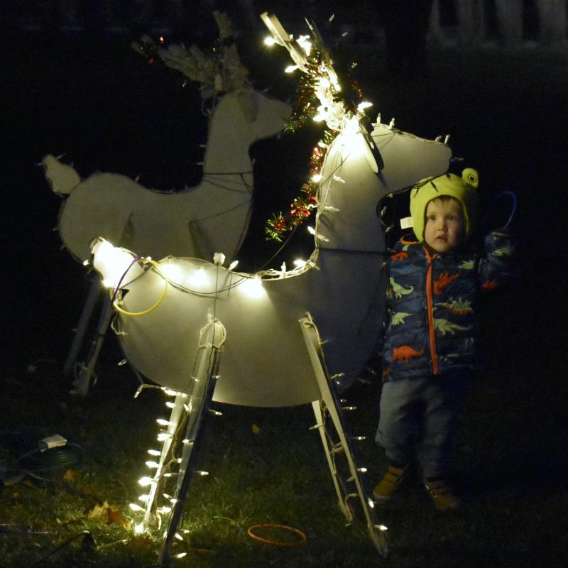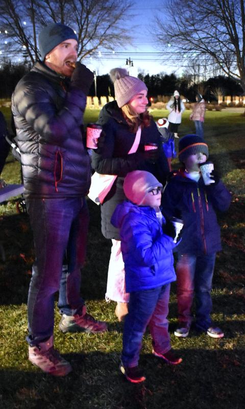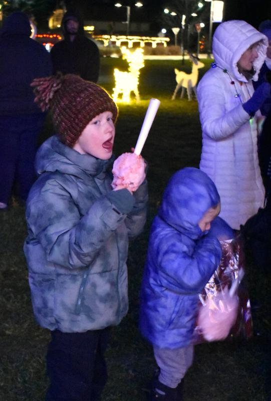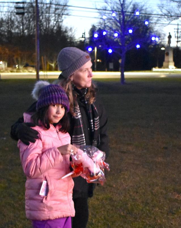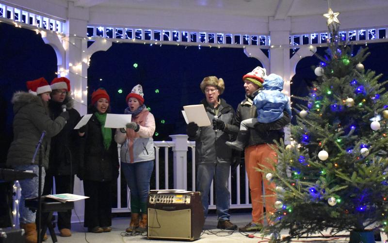 A mother and child share a moment while carolers sing before Santa's arrival Nov. 27 at Boothbay Common. FRITZ FREUDENBERGER/Boothbay Register