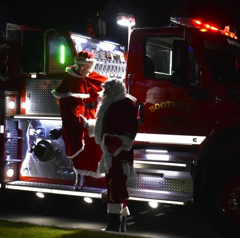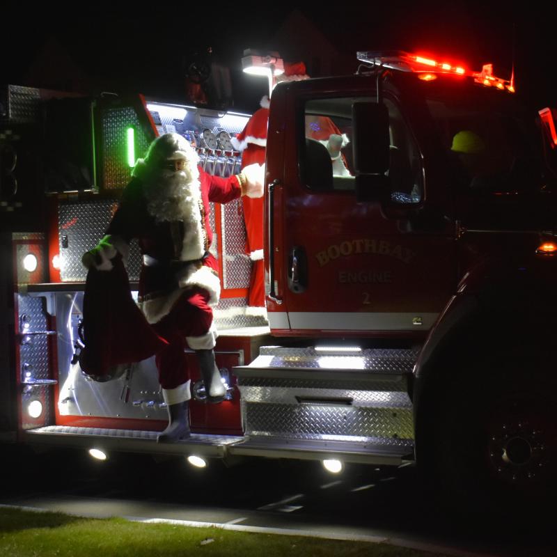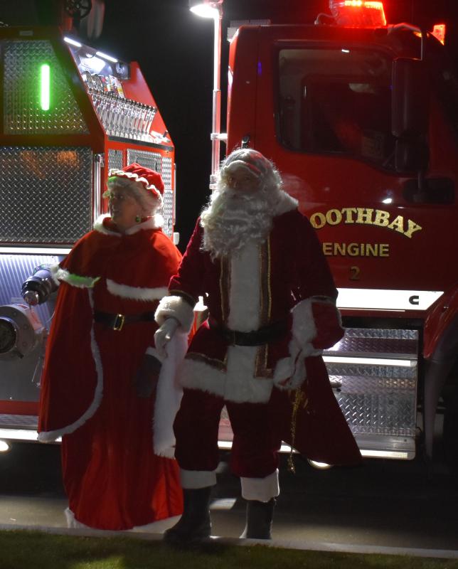 Santa and Mrs. Claus arrived in style on a Boothbay Fire Department truck. FRITZ FREUDENBERGER/Boothbay Register