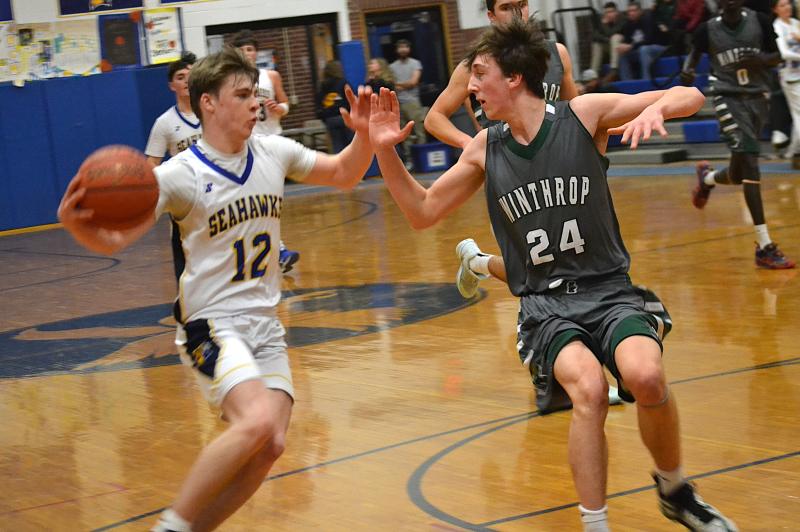 Barter scored 10 of his team-high 18 points in the fourth quarter as the Seahawks overcame a nine-point deficit, 41-32, with just over three minutes to play. In the final quarter, Boothbay outscored Winthrop, 18-8, to gain the Seahawks' fifth victory (5-13) in the team’s final game of the season. Barter hit two 3-pointers in the quarter and senior Harry Hinckley got six of his 10 points in the fourth quarter.