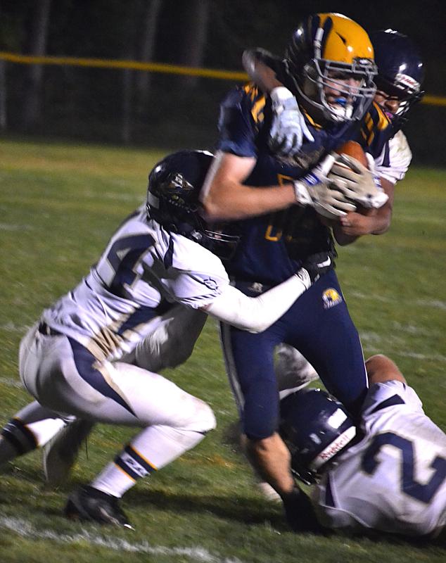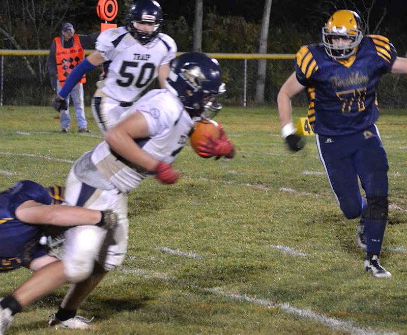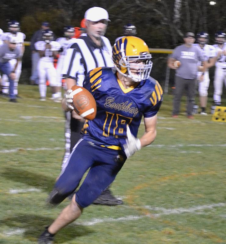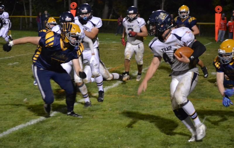 A point of emphasis for Coach Ed Crocker's 8-man football squad is his players "play hard for all four quarters." And that's what happened Sept. 26 at Sherman Field. Boothbay trailed Traip 14-2 late in the fourth quarter, but overcame the deficit and defeated Traip, 28-26, in overtime.