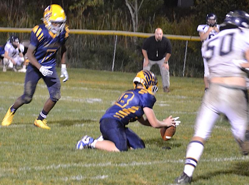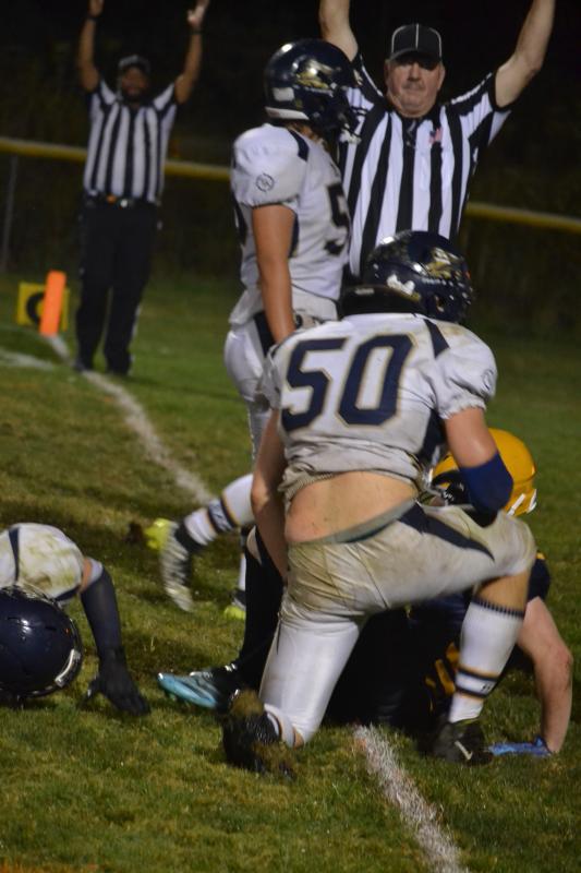 A couple plays later, running back Peyton Barter ran for paydirt. "I saw a hole and ran for it," he said. Later in the fourth quarter, Traip botched a snap on the punt which resulted in another touchdown, tying the score. Despite having lost its first three games and trailing by two touchdowns late in the fourth quarter in their fourth, Boothbay continued to play hard and fought for victory.