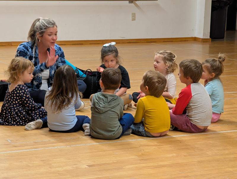 Each class appears to follow a three-act story structure, less the conflict. In its 30-minute duration, there’s a warm up, rising action, and an arc followed by falling action and rest. Classes are intentionally small, capped at 12, to support child-centered experiences. Ideal ages are 3-6. This class, Thursdays from 3:30 to 4 p.m., ends Dec. 18. Parents are encouraged to attend the final session.
