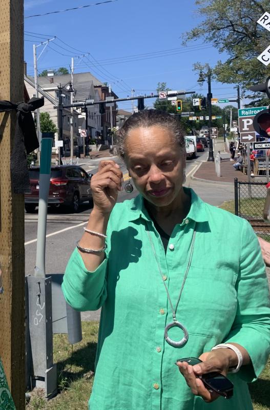 State Sen. Rachel Talbot Ross wipes back tears at the unveiling of the James Weldon Johnson Crossing signs in Wiscasset June 26. SUSAN JOHNS/Wiscasset Newspaper