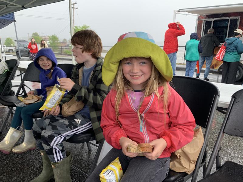 Sharing at the Easter Egg hunt. LISA KRISTOFF/Boothbay Register