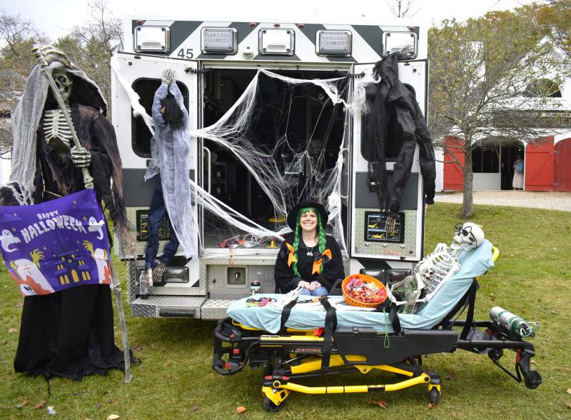 Eighteen tables representing local businesses and organizations dotted the lawn, each decorated for the season with heaps of candy for the young princesses, superheroes, witches and scary clowns to feast on. Attendees voted on their favorite table display: Nathan's Wellness Pharmacy & Apothecary won first place, Eastside Waterfront Park won second, and third was Boothbay Region Ambulance Service’s (BRAS) “Haunted Ambulance.”