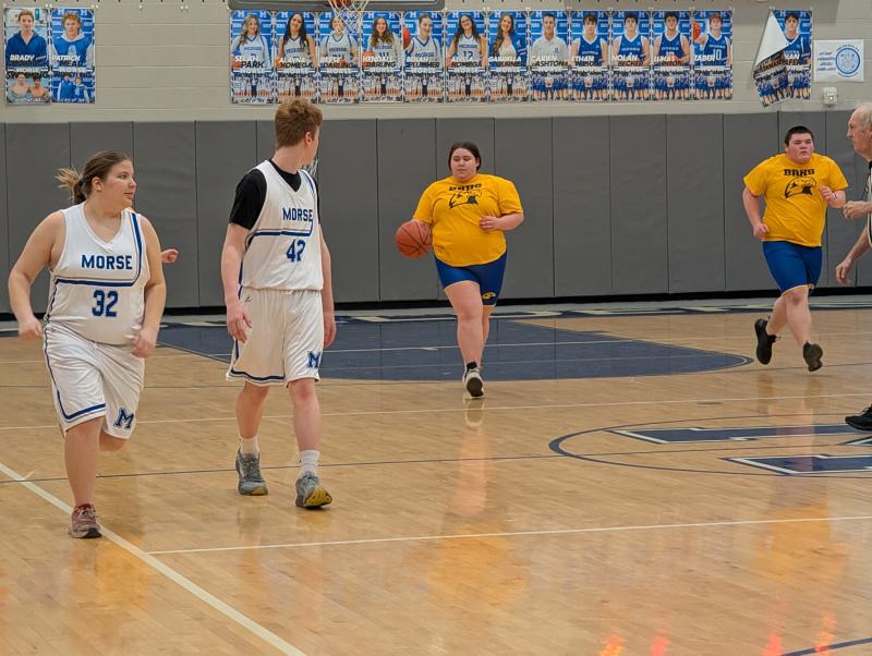 The Morse High School Shipbuilders beat the Boothbay Region High School (BRHS) Seahawks, 78-50, in Unified basketball’s season opener, Wednesday, Feb. 11 in Bath. The Shipbuilders scored first and maintained the lead throughout the game. By halftime, the Shipbuilders were up 32-22 and their lead grew in second half of play.