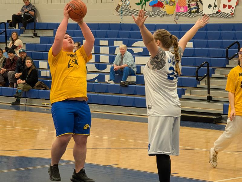 The Lincoln Academy Eagles beat the Boothbay Region High School (BRHS) Seahawks, 81-76, in Unified basketball Thursday, Feb. 12 at Lincoln Academy. Seahawk Matthew Jackson scored first and dominated the boards, scoring 22 total points for the game. The game was competitive throughout, 36-34 Eagles at the half, then nudging out the win in the final minutes of play.