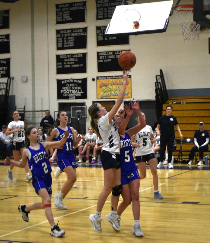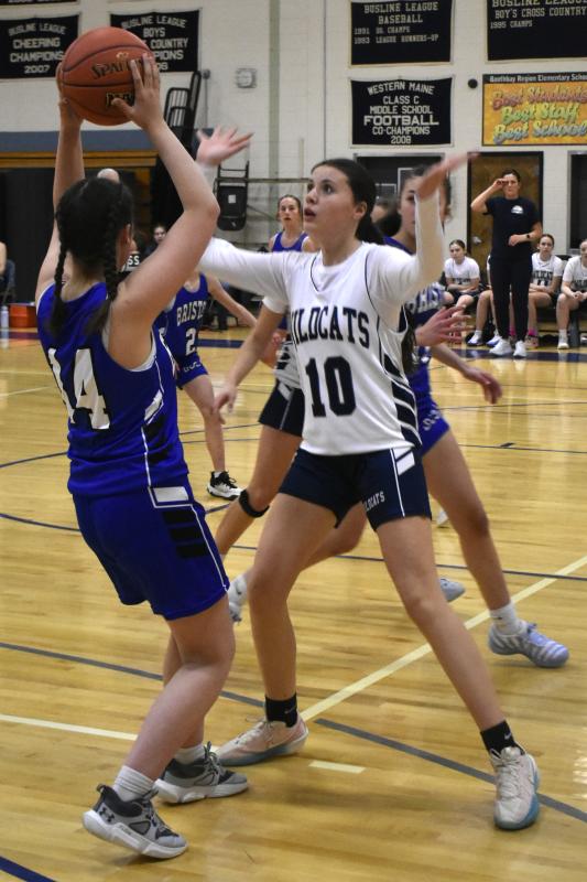 The Boothbay Region Elementary School (BRES) girls basketball team took a decisive win against Bristol Consolidated School Feb. 2. The undefeated, and top-seeded, Wildcats won 51-34 in the Busline League small school division quarterfinals.