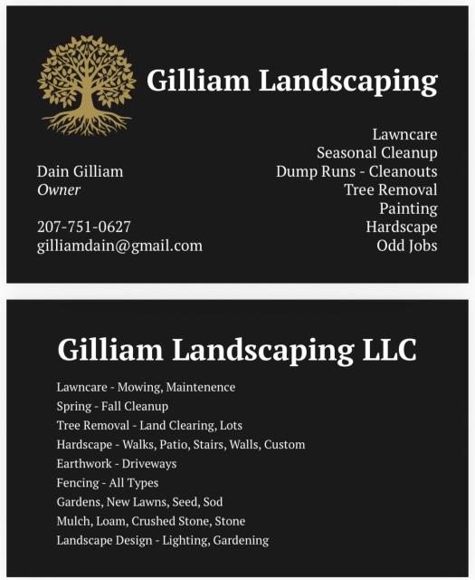 Gilliam Landscaping LLC Category Services Free quotes,Fully insured, excellent references. 207-751-0627